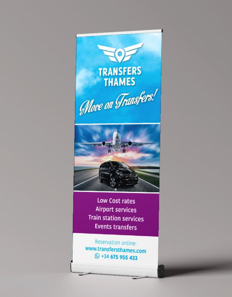Muy utilizados en ferias, stands y recepciones. Diseño roll-ups que comunican lo esencial de forma directa, con elementos visuales potentes y tipografías claras pensadas para la lectura rápida.